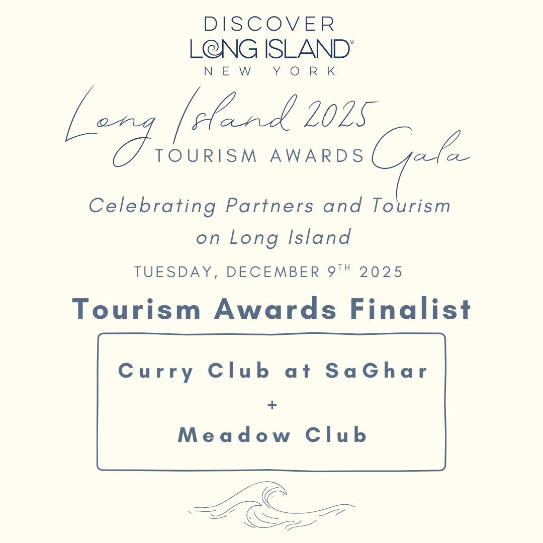 The Meadow Club & The Curry Club at SaGhar have been named Tourism Awards Finalists for the Long Island 2025 Tourism Awards Gala!